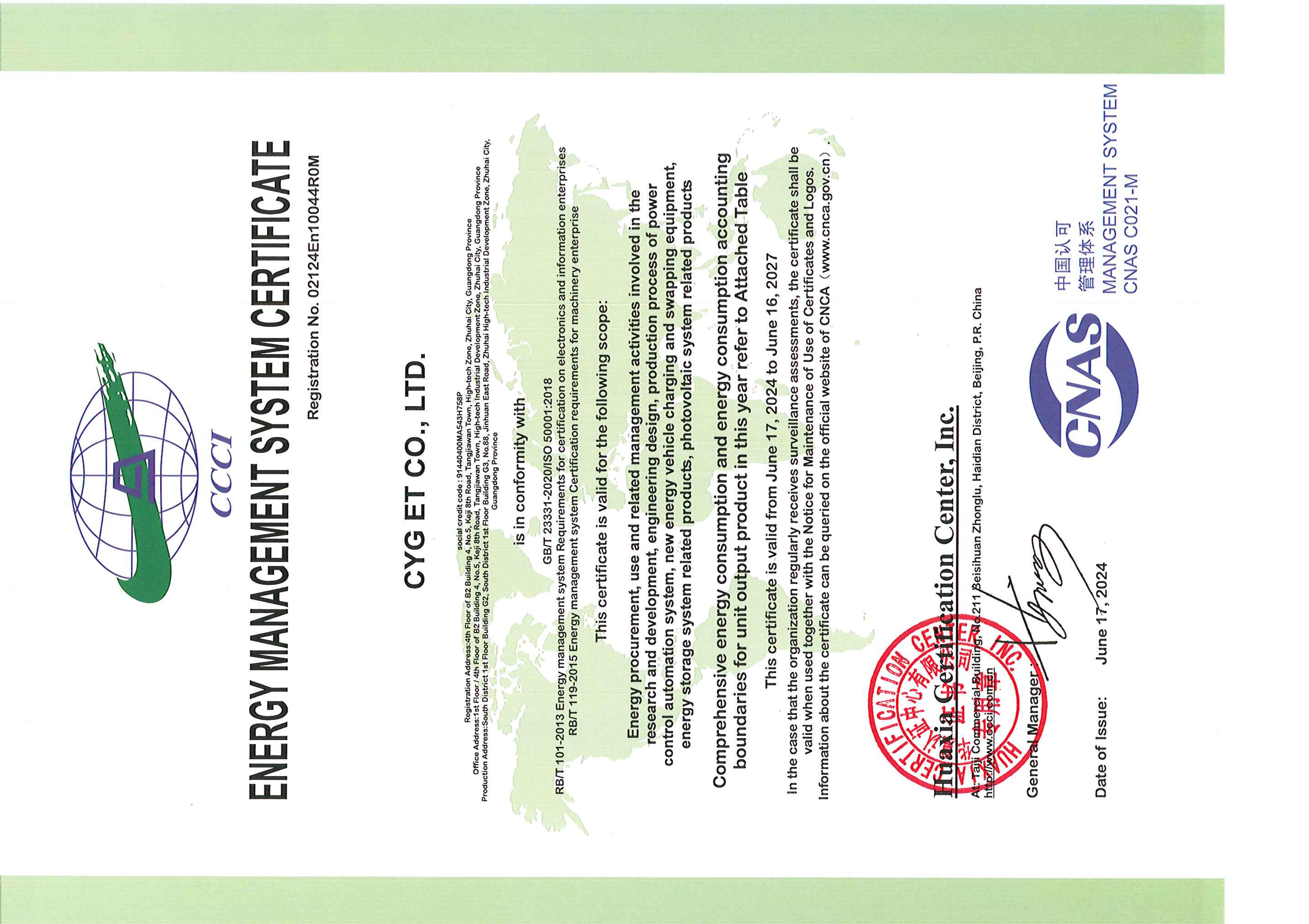 jcjc5500公海高能荣获能源管理体系认证证书